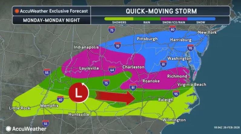 Two additional chances for snow or a rain-snow mix follow on Monday and Tuesday into Wednesday.